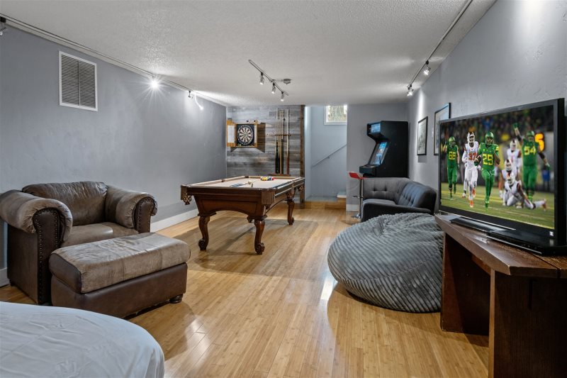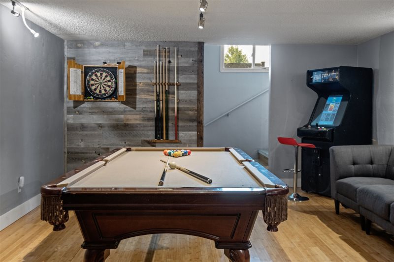 • Pool Table, Arcade game, Dartboard in game room, HDTV