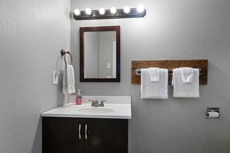 This large 4 bedroom has multiple levels. The main level is where the family can gather in the kitchen, dining area and large living room with a wood burning fireplace. On the back covered deck, you will find a salt system hot tub, gas grill and plenty of space for outside dining. There is a beautiful backyard with plenty of space to enjoy the afternoon after a long day out exploring. Walk up a 1/2 flight of stairs to the upper level and you will find the primary bedroom with large ensuite bathroom. Second bedroom upstairs also with its own full bathroom. Walk down 1/2 flight of stairs from the main level and you will find a game room with pool table, arcade game, and a dartboard. This level also has a king size bed and laundry room. Walk down another 1/2 flight of stairs from the game room and you will find a family room with 2 more bedrooms and a bathroom. There is a queen bed in one room and a bunk bed in the other room.